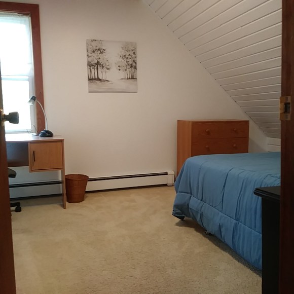 4 individual furnished bedrooms with shared kitchen and two bathrooms.